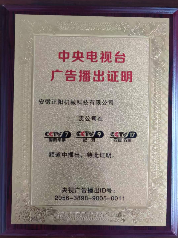 > 正陽機(jī)械 > 榮譽(yù)證書