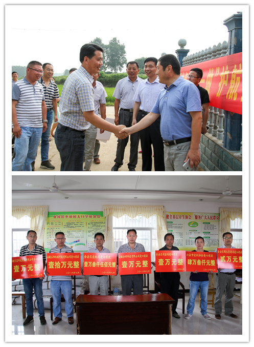 正陽(yáng)公司總經(jīng)理張為法、辦公室主任張宏明與金安區(qū)區(qū)領(lǐng)導(dǎo)在災(zāi)區(qū)捐款現(xiàn)場(chǎng)