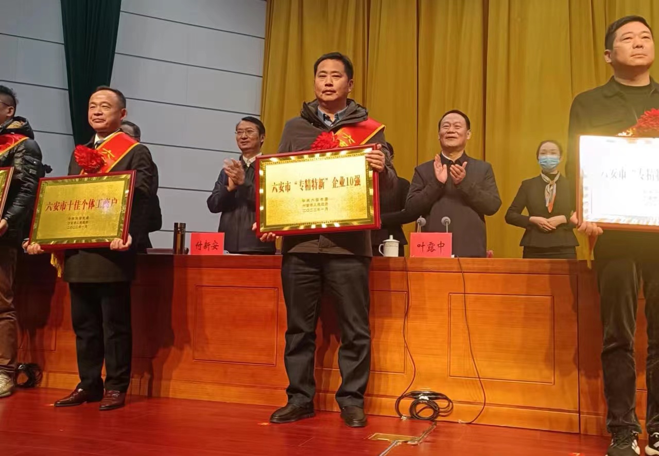 安徽正陽機(jī)械科技有限公司被中共六安市委、六安市人民政府授予六安市“專精特新”企業(yè)10強(qiáng)榮譽(yù)稱號